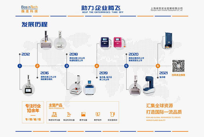 主要產(chǎn)品有:流變儀、質(zhì)構(gòu)儀(物性測(cè)試儀)、電子鼻、電子舌、電子眼,快速粘度儀,GC-O, 嗅聞儀,整體感官實(shí)驗(yàn)室,感官分析軟件等。保圣產(chǎn)品堅(jiān)持高品質(zhì),因此贏得了良好的口碑、加上優(yōu)質(zhì)的服務(wù)使得公司產(chǎn)品暢銷國(guó)內(nèi)各大高校、研究所、食品、藥品企業(yè)。 并獲得了高度肯定。